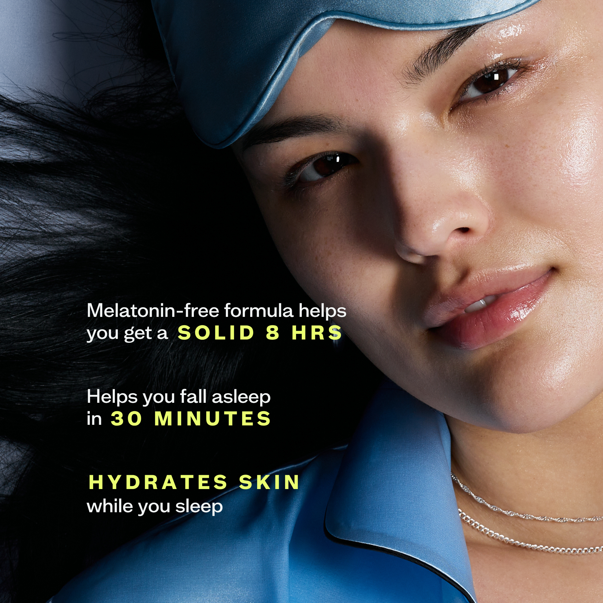 This bedtime, melatonin-free, melt-on-your-tongue skin supplement replenishes, visibly evens skin tone + helps you drift off into your best night’s sleep. Zero grogginess.