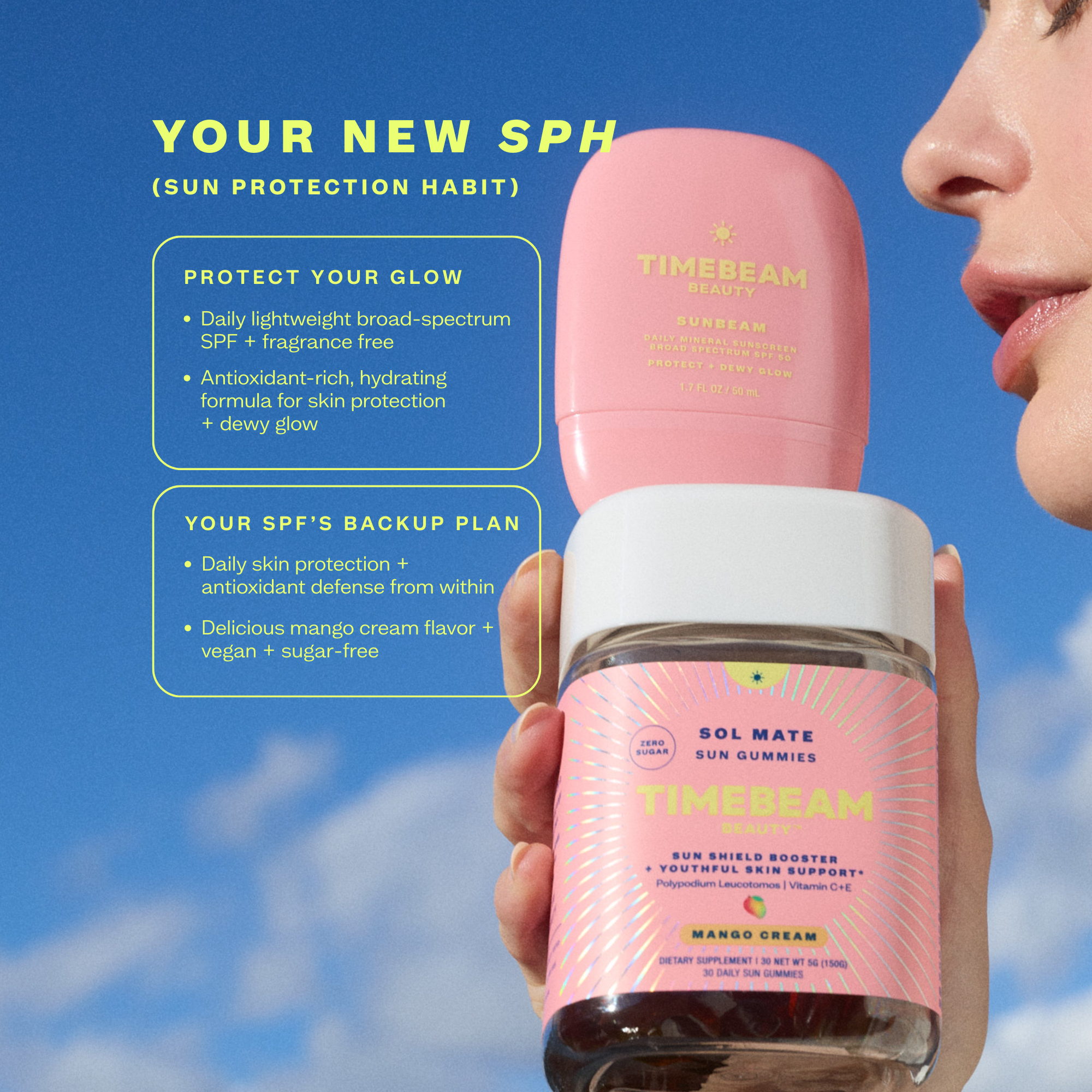 Meet your new SPH (sun protection habit) to support your skin inside & out, so you can say yes to sunshine and no to the damage.